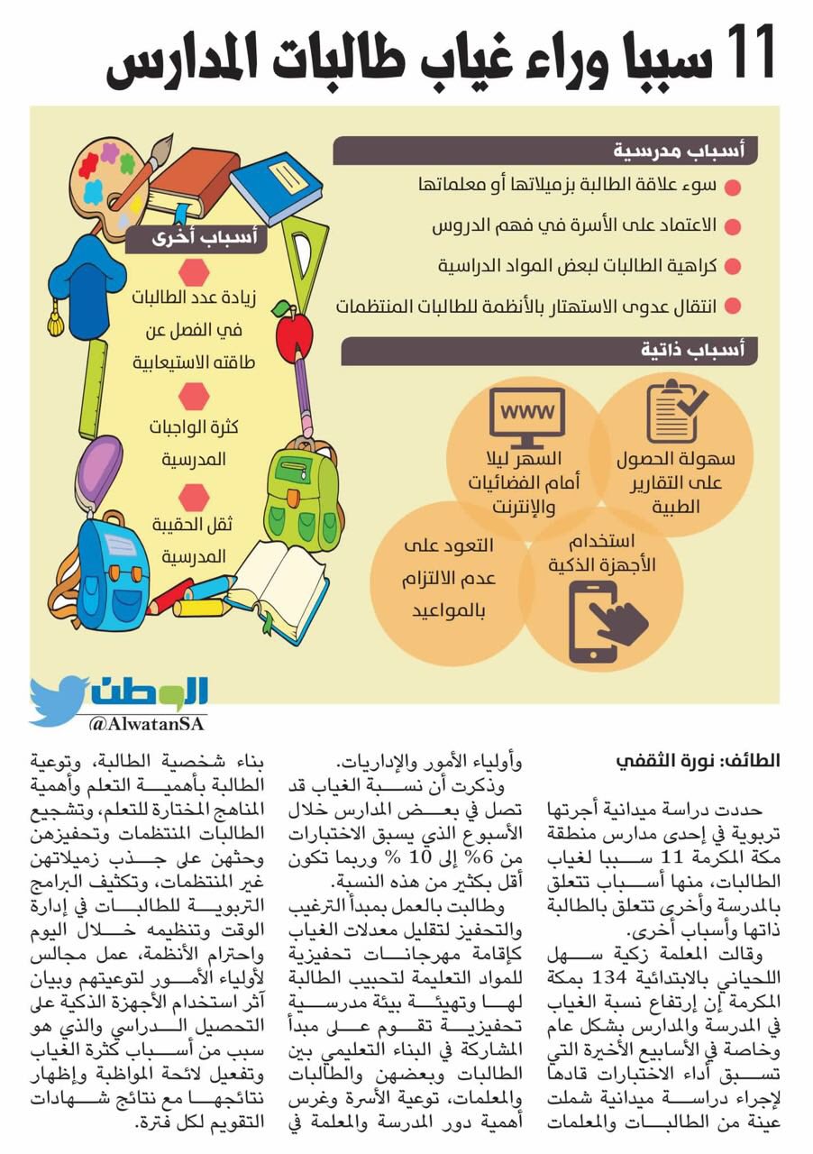 هاشتاق السعودية Op Twitter 11 سببا مابين مدرسي وذاتي وراء غياب الطالبات عن المدرسة الوطن