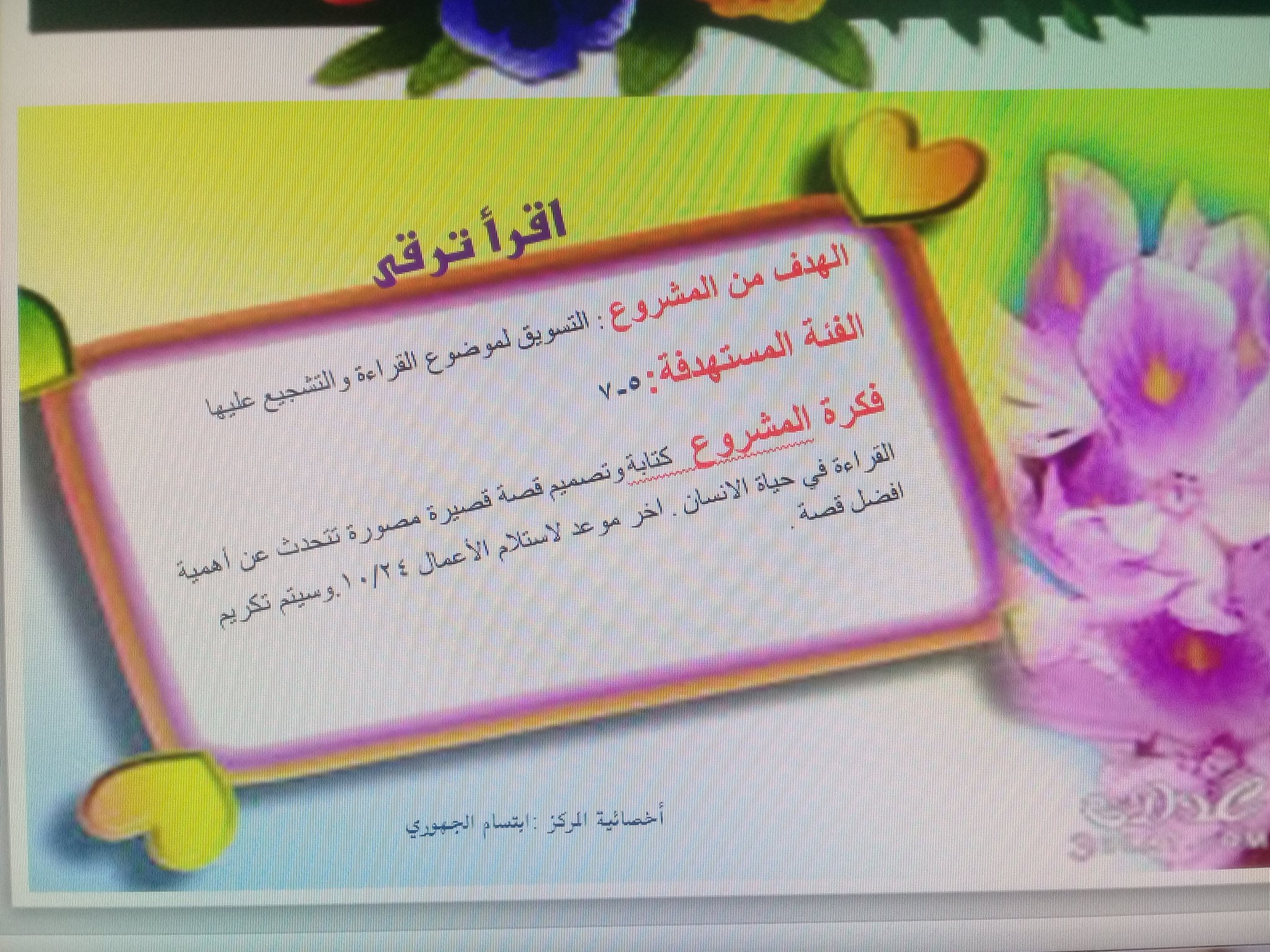 تقرير عن مشروع اقرأ ضمن حملة ساهم بكتاب لنقرأ جميعا في مجمع تحفيظ القرآن الكريم في مدينة ليلى صحيفة تعليم الأفلاج الإلكترونية